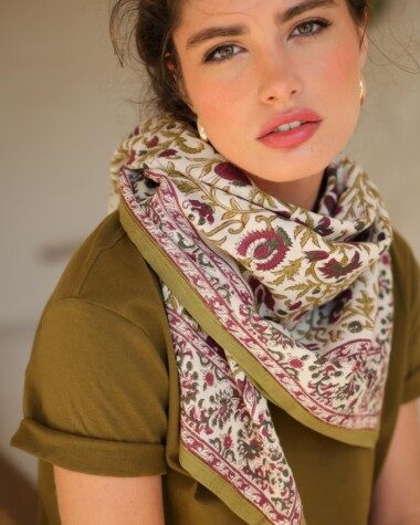 *L'impression au block-print est un procédé artisanal dans lequel chaque tampon destiné à imprimer le motif est gravé dans le bois puis imprégné de teinture pour être appliqué manuellement.
